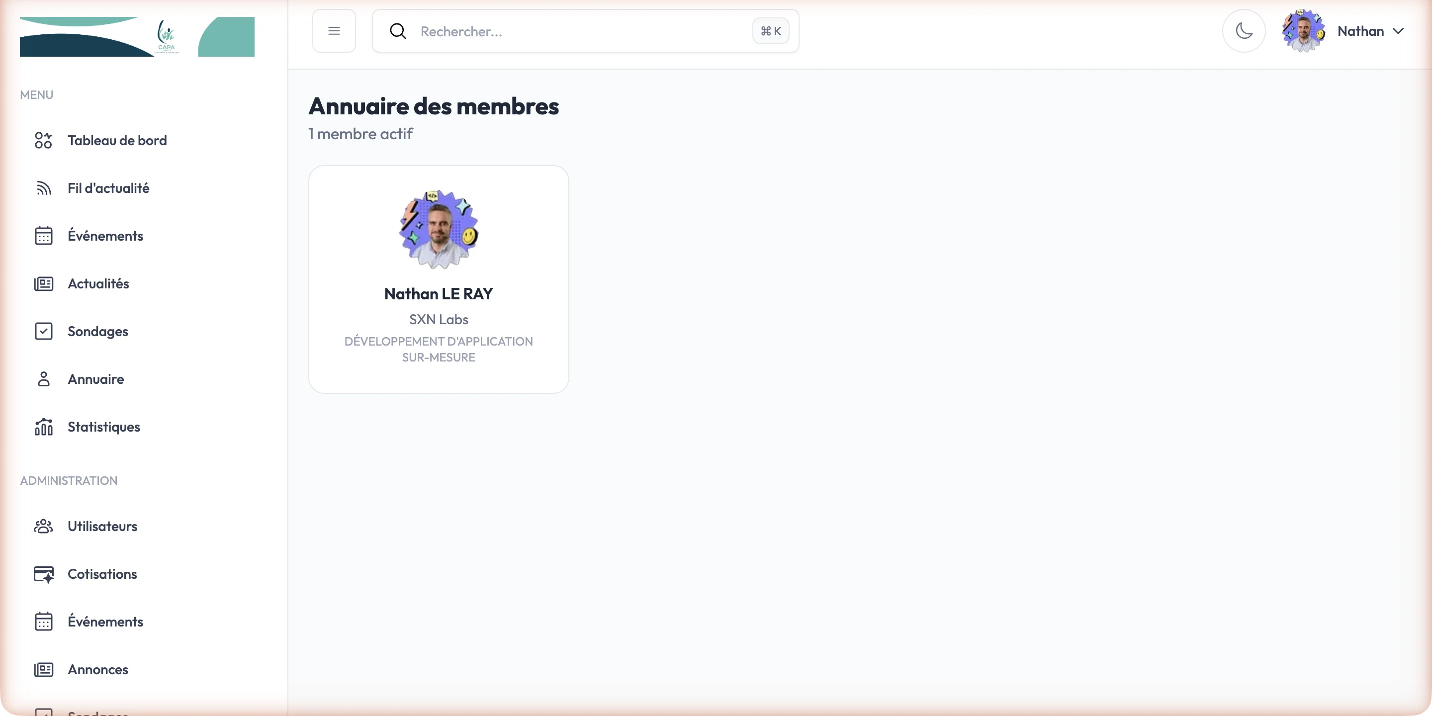 Le projet CAPA démontre qu'un outil sur mesure peut transformer la dynamique d'une communauté professionnelle. En combinant gestion opérationnelle et engagement social dans une seule plateforme, nous avons créé un écosystème où chaque interaction entre membres est facilitée et valorisée.